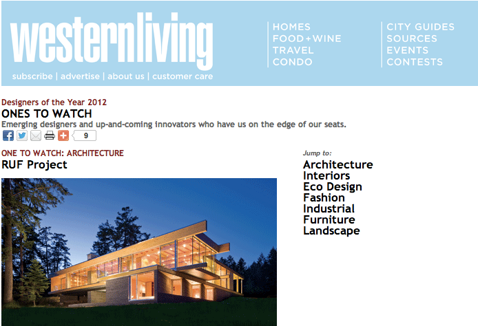 RUFproject wins the Western Living "One to Watch" Award