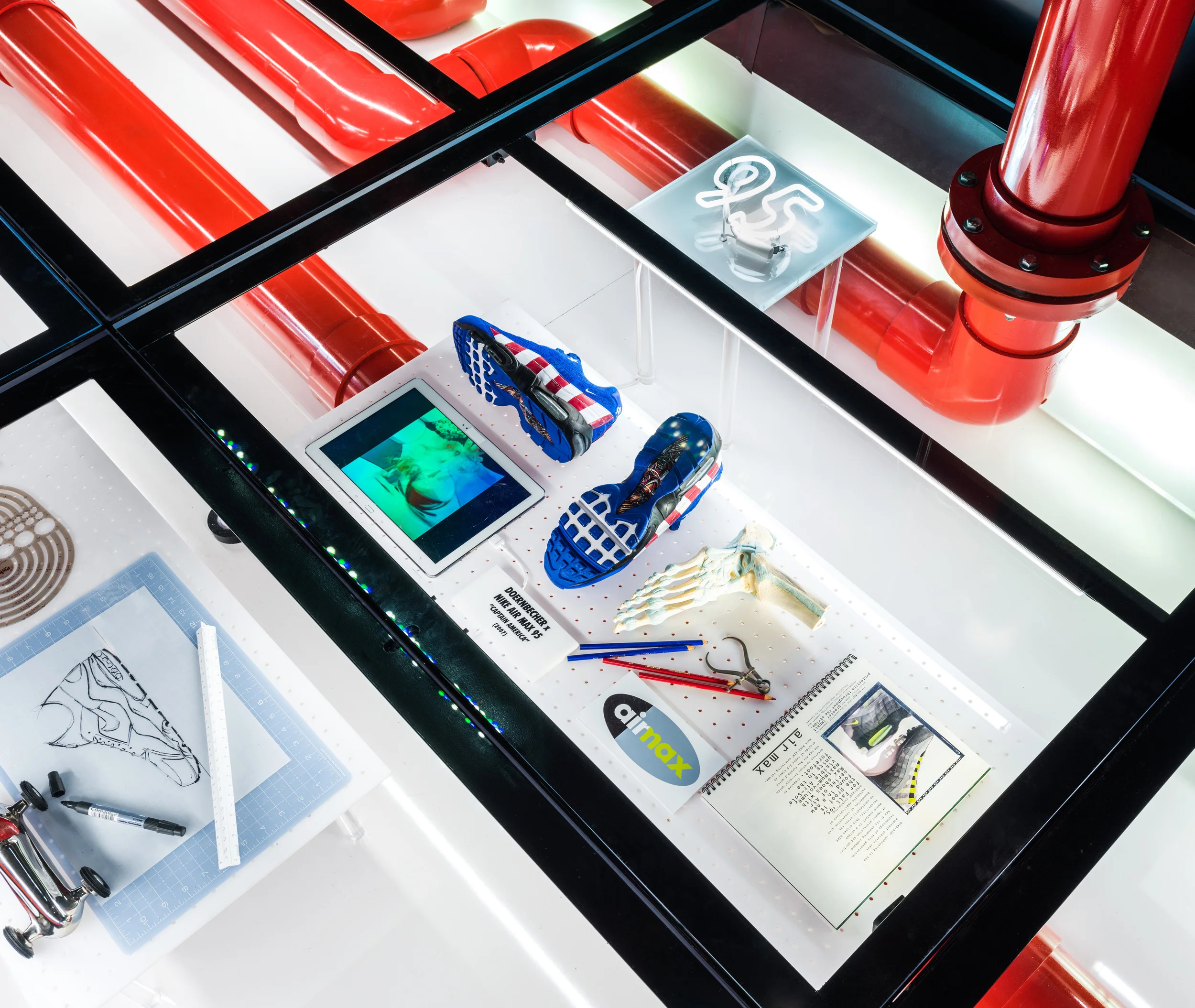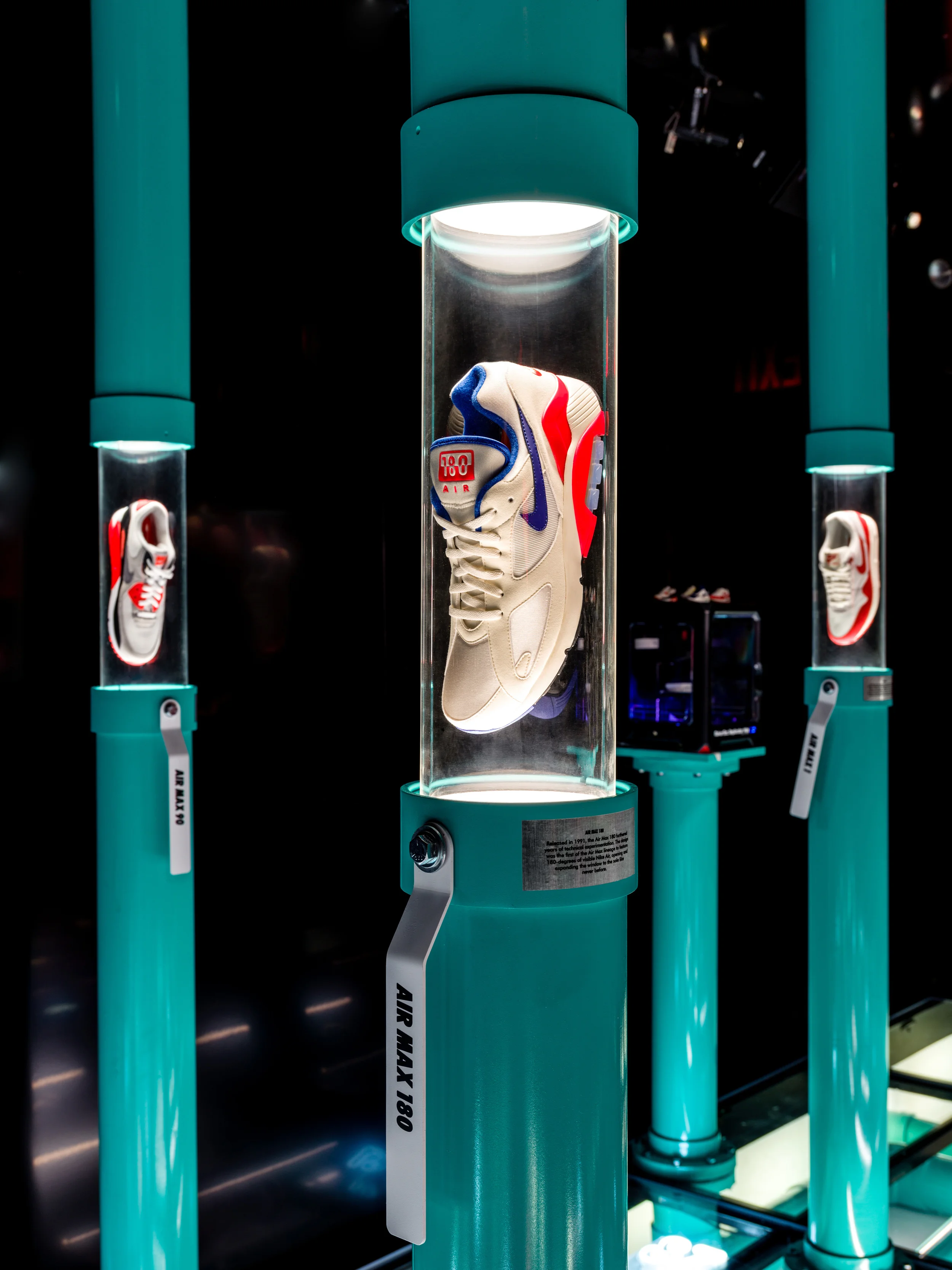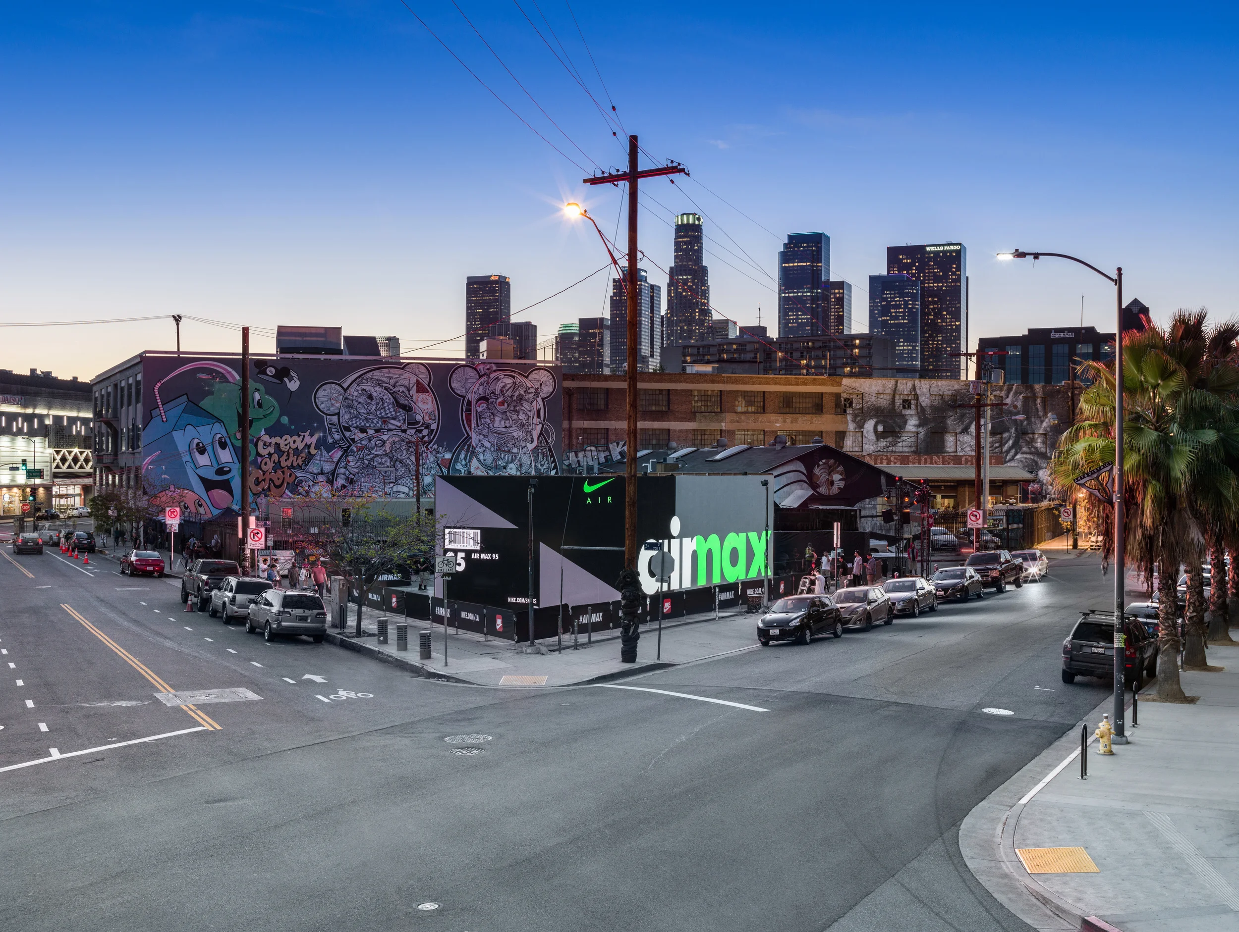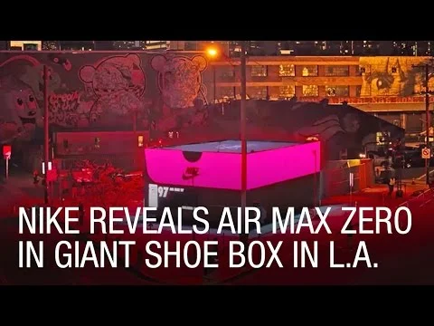 A giant LED sneaker box was located in the Arts District in Downtown Los Angeles, featuring a display of all Air Max models and design sketches from the legendary sneaker designer Tinker Hatfield.